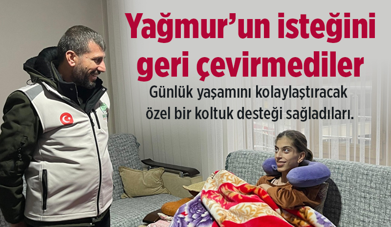Bingöl Umut Kervanı Derneği Genç İlçe Temsilciliği, kalp ve böbrek rahatsızlıklarıyla mücadele eden Yağmur Ok'un talebi üzerine, günlük yaşamını kolaylaştıracak özel bir koltuk desteği sağladı. |