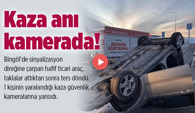 Bingöl'de sinyalizasyon direğine çarpan hafif ticari araç, taklalar attıktan sonra ters döndü. 1 kişinin yaralandığı kaza güvenlik kameralarına yansıdı.
