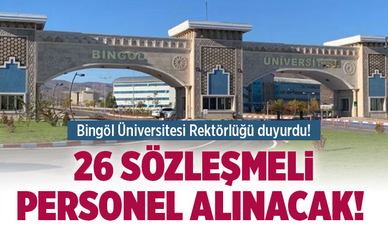 Bingöl Üniversitesi Rektörlüğü, merkez ve bağlı birimlerde görevlendirilmek üzere 26 sözleşmeli personel alımı yapacağını duyurdu. Başvurular 6 Mart'a kadar sürecek.
