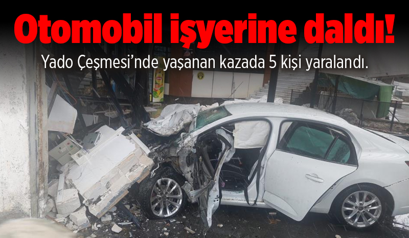 Bingöl'de yağışlı havada hızı nedeniyle sürücüsünün hakimiyetini kaybettiği otomobil, virajı alamayınca iş yerine girdi. Kazada 5 kişi yaralandı.