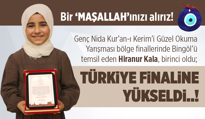 Diyarbakır'da düzenlenen Genç Nida Kur'an-ı Kerim'i Güzel Okuma Yarışması bölge finallerinde, Bingöl'ü temsil eden Hiranur Kala kendi kategorisinde birinci olarak Türkiye finallerine katılma hakkı kazandı. |