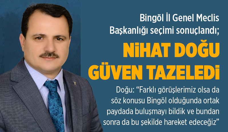 Bingöl İl Genel Meclisi'nde yapılan seçimde AK Parti adayı Nihat Doğu, 15 oy alarak yeniden başkan seçildi. Doğu, 'Bingöl için ortak paydada buluşmayı sürdüreceğiz' dedi.