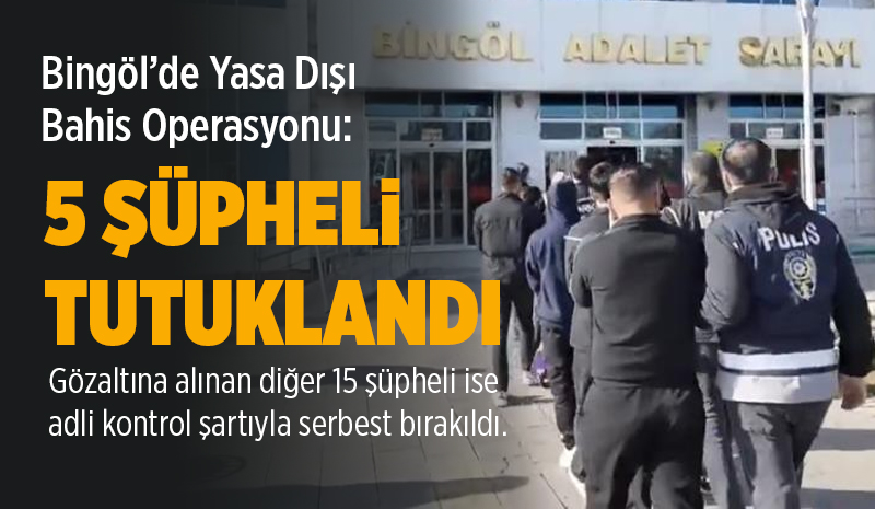 Bingöl'de polis ekiplerince düzenlenen yasa dışı bahis operasyonunda gözaltına alınan 20 şüpheliden 5'i tutuklandı, 15 kişi adli kontrolle serbest bırakıldı.
