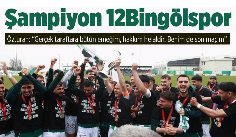 TFF 3. Lig 2. Grup'un son haftasında sahasında Silifke Belediye Spor ile 1-1 berabere kalan 12 Bingölspor, şampiyonluğunu resmen ilan etti. Yeşil-beyazlı ekip maçın ardından kupasını kaldırırken, Kulüp Başkanı Mehmet Engin Özturan, tribünlerin boş oluşuna sitem edip veda içeren sözler sarf etti.
