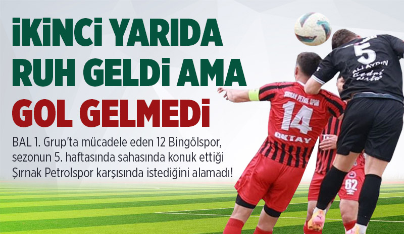 Şampiyonluk parolasıyla çıktığı 2024-2025 sezon yolculuğunun ilk 2 haftasında deplasmanda oynadığı karşılaşmalardan galibiyetle dönen 12 Bingölspor, sezonun 3. maçında sahasında Hakkâri Zapspor mağlubiyetinin ardından deplasmanda Diyarbakırspor ile golsüz beraberliğine bu haftaki Şırnak Petrolspor maçı ile bir beraberlik daha ekledi. Bu skorla 12 Bingölspor, puanını 8'e yükseltirken grupta 6. sıradan 7. sıraya geriledi.