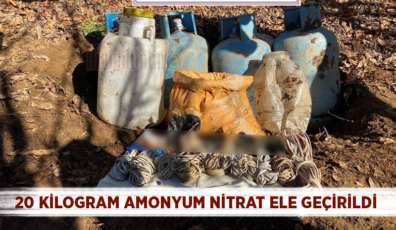 Bingöl Valiliğinden yapılan açıklamada, İl Jandarma Komutanlığınca yürütülen çalışmalar neticesinde Genç ilçesi kırsalında Eren Kış-6 operasyonu kapsamında icra edilen operasyon sonucunda yapılan arazi aramasında toprağa gömülü vaziyette 20 kilogram amonyum nitrat, 4 adet mutfak tüpü, 10 pil şarj cihazı, 4 adet şarjlı pil, 200 metre uzunluğunda kablo ve muhtelif malzemenin ele geçirildiği belirtildi. Operasyon bölgesinde bölücü terör örgütü mensuplarınca kullanılan malzemelerin imha edilerek kullanılamaz hale getirildiği kaydedildi.