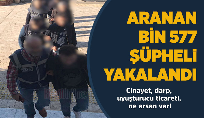 Bu kapsamda, adam öldürme suçundan hakkında 20 yıl 1 gün kesinleşmiş hapis cezası bulunan Ç.Ş., 5 ayrı dosyadan hakkında 17 yıl 8 ay 6 gün kesinleşmiş hapis cezası bulunan Y.B, Kasten Öldürmeye Teşebbüs, Uyuşturucu ve Uyarıcı Madde Ticarete Yapma suçundan hakkında 17 yıl 11 ay kesinleşmiş hapis cezası ve aranma kaydı olan E.Ö., Çocuğun Nitelikli Cinsel İstismarı Suçundan hakkında 15 yıl kesinleşmiş hapis cezası ve aranma kaydı olan M.A. ile diğer suçlardan aranma kaydı toplam bin 577 şahıs yakalanarak adli makamlara teslim edildi.