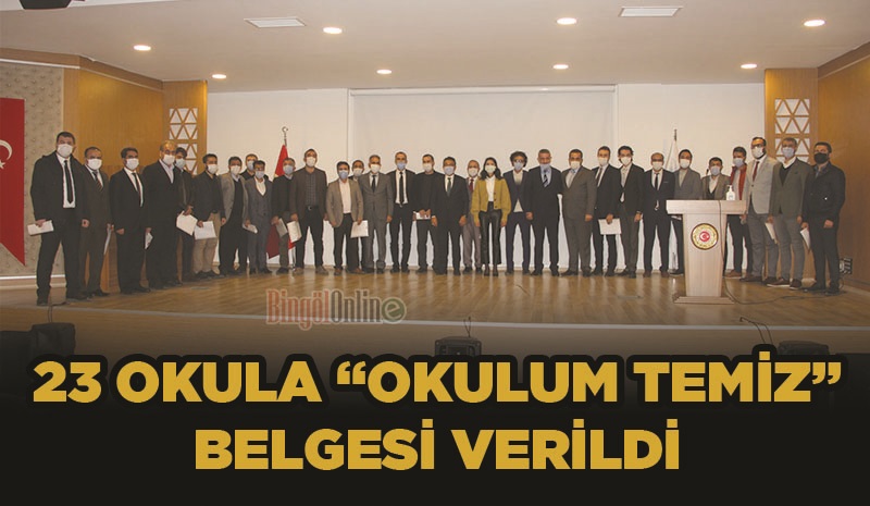 Okullarda hijyen şartlarının geliştirilmesi ve enfeksiyon önleme ve kontrol süreçlerinin tutarlı olması amacıyla sürdürülen “Okulum Temiz” programına başvuran okulların arasında Genç ilçesinde 23 okul belgeyi almaya hak kazanarak Ebeveynlere güven verdi. Şehit Hakan Akdere Kültür Merkezinde düzenlenen programla 23 okula belgeleri takdim edildi. Programa katılan Bingöl İl Milli Eğitim Müdürü Rahmi Güney, proje ile ilgili açıklamalarda bulundu.