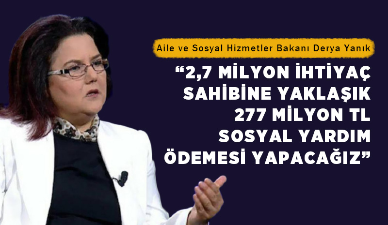 Bakan Yanık, Mayıs ayındaki şartlı eğitim, şartlı sağlık, çoklu doğum ve kronik hastalık yardımları kapsamında yapılan sosyal yardım ödemelerine ilişkin bilgi verdi. Bakan Yanık, söz konusu sosyal yardım programları ile çoklu doğum sonucu dünyaya gelen çocuklar, ilk ve ortaöğretim çağında olan çocuklar ve 0-6 yaş arasında olan çocuklar ile gebe kadınların gebelikleri, doğumları ve lohusalık dönemleri için ihtiyaç sahibi ailelere 2 aylık periyotlarla düzenli nakdi yardım verdiklerini belirterek toplam 2,7 milyon ihtiyaç sahibine 273,4 milyon TL ödeme yapılacağını bildirdi.