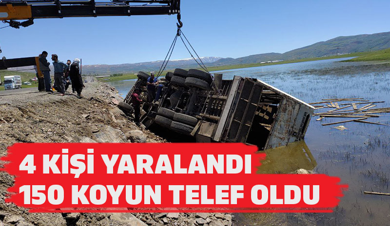 Kaza, Karlıova merkezi Kanitaht Mahallesi'nde meydana geldi. Edinilen bilgilere göre, Şükrü Kılıç yönetimindeki 63 N 3709 yönetimindeki kamyon sürücüsünün direksiyon hakimiyetini kaybetmesi sonucu yol kenarındaki gölete devrildi. Kamyonun devrilmesiyle içinde bulunan 4 kişi yaralanırken, 150 koyun da telef oldu.