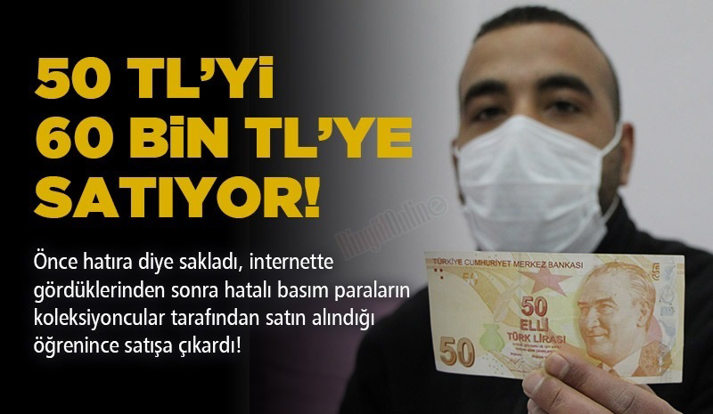 Bilen, “Bundan yaklaşık 1 ay önce bendeki 50 TL'nin bir yüzünde sıfır olmadığını fark ettim. Hatıra olsun diye de bu parayı sakladım. Sonra bir araştırma yaptım internette ve baktım hatalı basım paraları satın alan koleksiyoncular var, koleksiyoncuların ilgisi var. Yine bu paraları haber yapıp satışa çıkaranlar var. Bende nereden nasıl geldiğini bilmediğim bir sıfırı eksik olan 5O TL'yi 60 bine satışa çıkardım. Umarım ilgilenen ve alan olur diyorum” dedi.