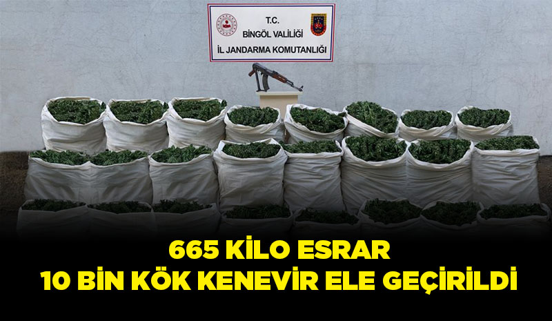 Valilik tarafından yapılan açıklamada, “Bingöl İl Jandarma Komutanlığı unsurlarınca Narko-Terörizmle mücadele kapsamında yürütülen istihbari ve teknik çalışmalar neticesinde; Bingöl İli Genç ilçesi kırsalında şüpheli şahıslar tarafından yüklü miktarda yasadışı kenevir ekimi yapıldığı ve kenevir tarlalarından esrar elde edilerek piyasaya sürüleceği, esrar satışından elde edilen gelir ile terör örgütüne finans sağlanacağına dair elde edilen bilgiler doğrultusunda; 19 Ağustos 2021 tarihinde Bingöl İli Genç ilçesi kırsalında icra edilen operasyonda 7 Farklı Noktada; 411 Kg Kubar Esrar Maddesi, 254 Kg Skunk Esrar Maddesi, 10 bin Kök Kenevir Bitkisi, 1 adet AK-47 Kaleşnikof Piyade Tüfeği, 1 Adet Av Tüfeği, 1 adet AK-47 Kaleşnikof Piyade Tüfeği Şarjörü, 24 adet 7.62 mm çapında fişek, 3 adet su pompası, 600 metre sulama hortumu, 1600 metre damlama su sistemi ele geçirilmiştir” denildi.