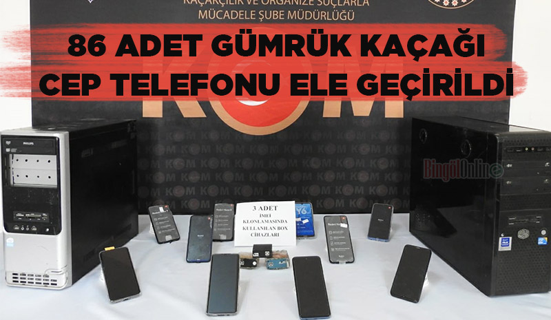 Valilikten yapılan açıklamada, “Emniyet Müdürlüğümüz Kaçakçılık ve Organize Suçlarla Mücadele Şube Müdürlüğünce gümrük kaçağı cep telefonlarının ele geçirilmesi ve kamu zararının engellenmesi amacıyla 5 ay süren çalışmalar sonucunda 11.03.2021 tarihinde Bingöl ve Diyarbakır illerinde gerçekleştirilen eş zamanlı operasyonda; 6 işyeri ve 3 ikamette yapılan aramalarda 10 adet gümrük kaçağı cep telefonu, 3 adet imei klonlama işleminde kullanılan box cihazı ve 2 adet bilgisayar ele geçirilmiş, olaylarla ilişkili 6 şahıs gözaltına alınarak adli işlemler sonucunda serbest bırakılmıştır. Yürütülen dosya kapsamında piyasa değeri yaklaşık 225.000 TL olan 86 adet gümrük kaçağı cep telefonu ele geçirilmiş ve toplamda 14 şahıs hakkında 5607 SKM suçundan adli işlem yapılmıştır” denildi.