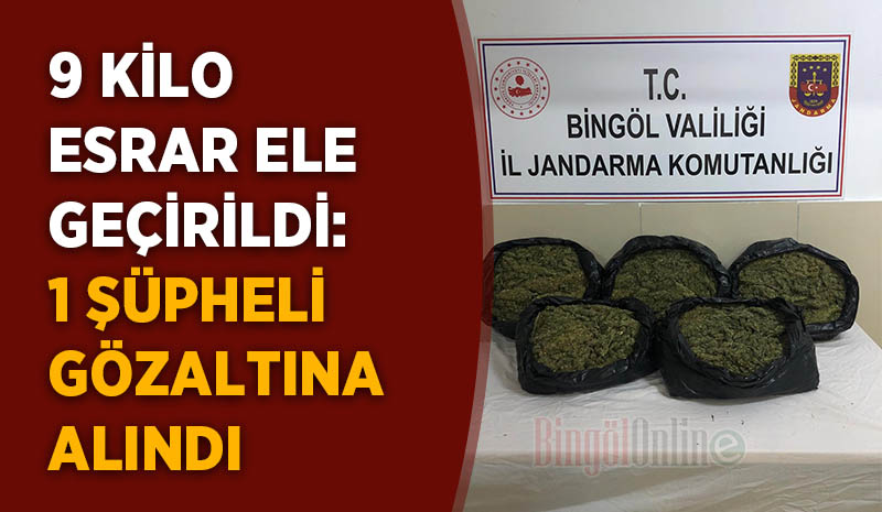 Valilik yaptığı açıklamada, “Bingöl İl Jandarma Komutanlığınca yürütülen çalışmalar neticesinde, Bingöl İli Genç ilçesi Küpar Yol Kontrol Noktasında icra edilen uygulamada bir şahsın elinde çuval ile yaya olarak gittiği, dur ihtarı yapıldığı halde kaçma girişiminde bulunduğu ve yapılan kısa süreli takip sonucu şüpheli şahıs durdurulmuş olup taşıdığı çuval içerisinde yapılan aramada 5 poşet halinde toplam 9 kilo 682 gr kubar esrar ele geçirilerek 1 şüpheli hakkında yasal işlem başlatılmıştır” denildi.