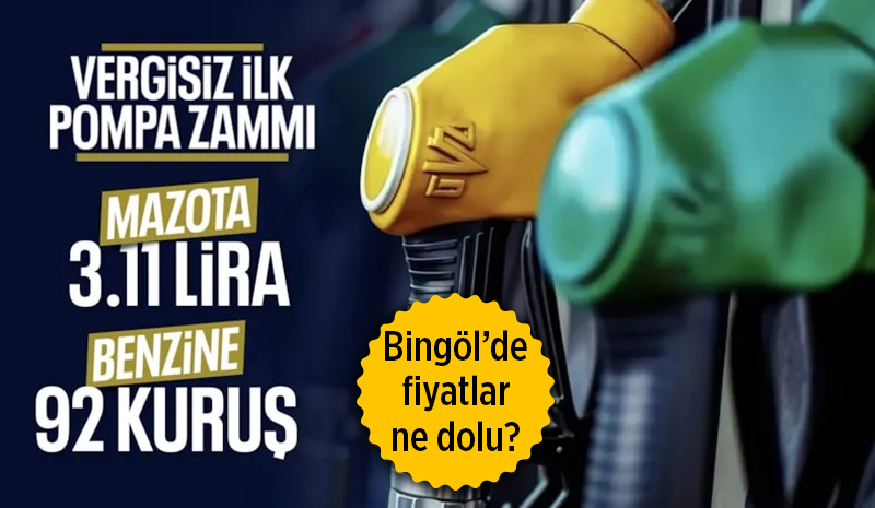 Zamla birlikte Bingöl'de akaryakıt fiyatları yeniden güncellendi. Kentte motorinin litre fiyatı 66,34 TL'ye, benzinin litre fiyatı ise 61,88 TL'ye yükseldi. LPG'nin litre fiyatı ise 31,19 TL olarak satışa sunuluyor.