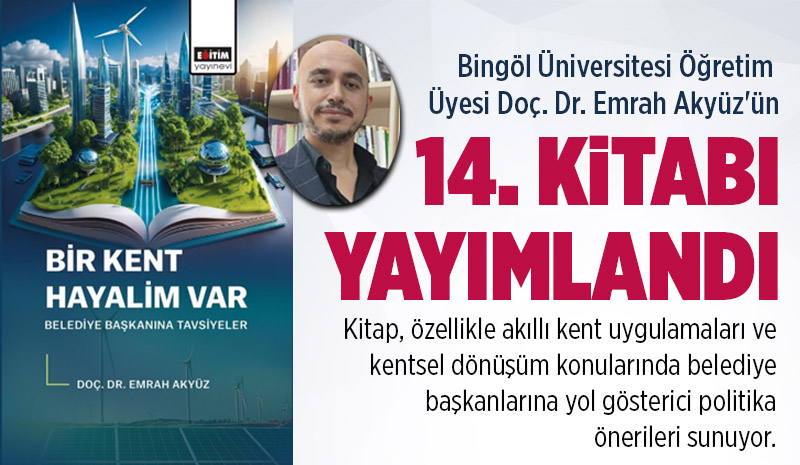 Akyüz'ün 'Bir Kent Hayalim Var: Belediye Başkanına Tavsiyeler' kitabı çıktıBingöl Üniversitesi Öğretim Üyesi Doç. Dr. Emrah Akyüz'ün 'Bir Kent Hayalim Var: Belediye Başkanına Tavsiyeler' yayınlandı. Akyüz: 'Bu kitabın, kentlerimizin geleceği için önemli bir adım olacağına inanıyorum' değerlendirmesinde bulundu.![]() Bingöl Üniversitesi Kalite Yönetimi Koordinatörü Doç. Dr. Emrah Akyüz'ün 14. kitabı, "Bir Kent Hayalim Var: Belediye Başkanına Tavsiyeler", uluslararası Eğitim Yayınevi tarafından okuyucuyla buluşturuldu. Kitap, özellikle akıllı kent uygulamaları ve kentsel dönüşüm konularında belediye başkanlarına yol gösterici politika önerileri sunuyor. Doç. Dr. Emrah Akyüz, kitabında, modern kentleşme süreçlerinde karşılaşılan sorunlara çözüm önerileri getirirken, akıllı kent teknolojilerinin nasıl etkin bir şekilde kullanılabileceğine dair stratejiler paylaşıyor. Kitap, sürdürülebilir kentleşme, çevre dostu enerji politikaları, dijital dönüşüm ve kent yönetiminde inovasyon gibi güncel konulara odaklanıyor. Akyüz, belediye başkanlarına ve yerel yöneticilere, kentlerini daha yaşanabilir, çevreci ve teknolojik açıdan gelişmiş hale getirmek için pratik tavsiyeler sunuyor. Eser, özellikle son yıllarda hız kazanan akıllı kent uygulamalarına ilgi duyan yerel yönetimler, akademisyenler ve kent plancıları için önemli bir kaynak niteliği taşıyor. Akyüz, kitabında, dünya genelinde başarılı olmuş akıllı kent örneklerini inceleyerek, bu örneklerin Türkiye'deki kentlere nasıl uyarlanabileceğini ele alıyor. Ayrıca, çevre ve enerji alanındaki bilimsel birikimini kullanarak, kentlerin enerji verimliliği ve sürdürülebilirlik açısından nasıl dönüştürülebileceğine dair çarpıcı önerilerde bulunuyor. Doç. Dr. Emrah Akyüz, kitabın yayımlanmasıyla ilgili yaptığı açıklamada, "Kentler, insanların yaşam kalitesini doğrudan etkileyen yaşam alanlarıdır. Bu kitabı, belediye başkanlarına ve yerel yöneticilere rehberlik etmek, kentlerimizi daha yaşanabilir ve sürdürülebilir hale getirmek amacıyla kaleme aldım. Akıllı kent uygulamaları, artık bir lüks değil, bir gerekliliktir. Bu kitabın, kentlerimizin geleceği için önemli bir adım olacağına inanıyorum" ifadelerini kullandı.