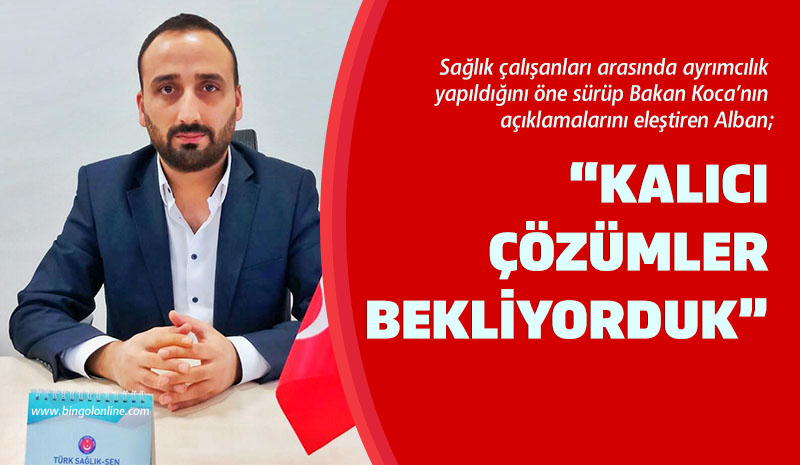 Bingöl Türk Sağlık-Sen Başkanı Kenan Alban, Sağlık Bakanı Fahrettin Koca'nın sağlık çalışanlarına dönük açıkladığı döner sermaye ödemelerinin adil olmadığını öne sürdü.