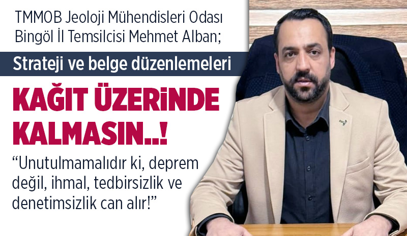 Genelde Türkiye'nin, özelde ise Bingöl ve bölgenin depremsellik riskine dikkat çekip tedbir çağrısında bulunan Alban, atılacak adımların kâğıt üzerinde düzenlemelerden değil, somut ve koruyucu tedbirler olması gerektiğini vurguladı.