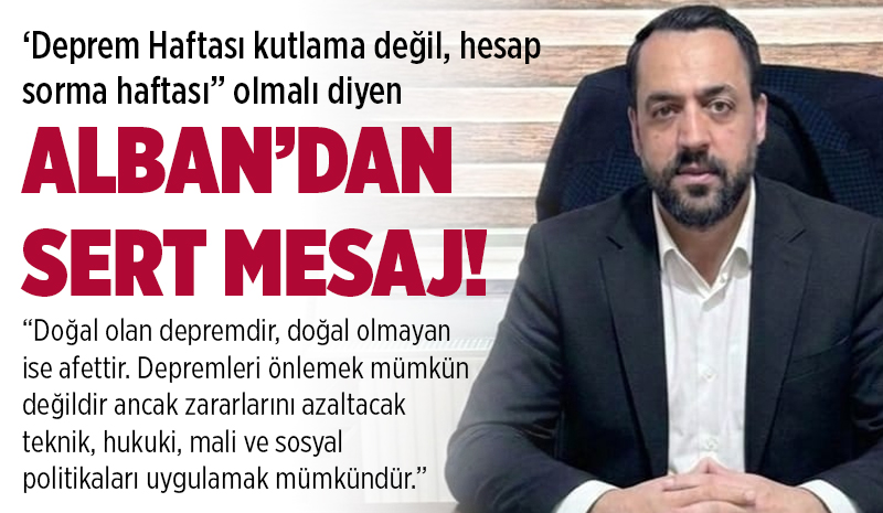 Alban'dan Deprem Haftası'nda Sert MesajDeprem Haftası için 'kutlama değil, hesap sorma haftası' mesajını veren ve yaşanan büyük afetlere rağmen gerekli adımların atılmadığı ifade eden TMMOB Jeoloji Mühendisleri Odası Bingöl İl Temsilcisi Mehmet Alban; 'Doğal olan depremdir, doğal olmayan ise afettir. Depremleri önlemek mümkün değildir ancak zararlarını azaltacak teknik, hukuki, mali ve sosyal politikaları uygulamak mümkündür.'![]() Türk Mühendis ve Mimar Odaları Birliği (TMMOB) Jeoloji Mühendisleri Odası Bingöl İl Temsilciliği, 1–7 Mart Deprem Haftası dolayısıyla yaptığı basın açıklamasında dikkat çeken mesajlar verdi. Açıklamada, Deprem Haftası'nın “kutlama değil, hesap sorma haftası” olması gerektiği vurgulandı. İl Temsilcisi Mehmet Alban imzasıyla yayımlanan açıklamada, başta 1971 ve 2003 Bingöl depremleri ile 2023 Kahramanmaraş merkezli depremler olmak üzere yaşanan büyük afetlere rağmen gerekli adımların atılmadığı ifade edildi. “Depremi ve Deprem Suçlarını Unutma, Unutturma”Açıklamada, Bingöl'ün hem Kuzey Anadolu Fay Hattı hem de Doğu Anadolu Fay Hattı kesişim noktasında bulunduğu hatırlatılarak kentin bir “deprem sarmalı” içinde yer aldığı belirtildi. Buna rağmen;
