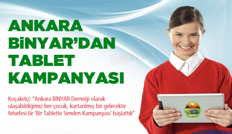 Bingöl ve ilçelerinde bilgisayar ve tablet eksiği nedeniyle eğitim imkânından yararlanamayan çocuklar için "Bir tablet de senden" kampanyası başlatan Ankara BİNYAR Derneği, dayanışma ruhu ile sağlanan tabletleri Bingöl'deki kamu kurumlarının da desteği ile çocuklara ulaştıracak.
