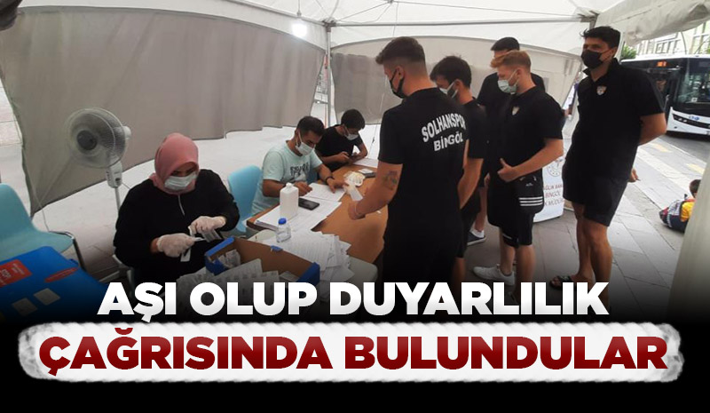 Türkiye Voleybol Federasyonu Efeler Ligi'nde mücadele eden Bingöl Solhanspor'un bazı oyuncuları ve yönetimi, korona virüs ile mücadelede aşılanmanın önemine dikkat çekmek amacıyla uygulama noktasında aşılarını oldu. 6 oyuncu ile birlikte Genç Caddesi önündeki aşı uygulamasına gelen Solhanspor Başkanı Ziya Sözen, gençlerin aşılarını olması gerektiğine dikkat çekti. Başkan Sözen, 'Efeler Ligi'nde mücadele eden kulübümüz Solhanspor, aşı duyarlılığına dikkat çekmek için Bingöl'de de son derece az sayıda bulunan aşıya talebi artırmak için insanlarımızı, gençlerimizi teşvik etmek amacıyla sporcularımız bugün burada aşı standında aşılarını oldular. Bütün kardeşlerimizi halkımızın sağlığı için aşı konusunda duyarlı olmaya davet ediyorum. Özelikle genç kardeşlerimiz bu sene Solhanspor'u sahada izlemek istiyorlarsa, maçlarımızı yerinde takip etmek istiyorlarsa, aşılarını olsunlar diyoruz" dedi.