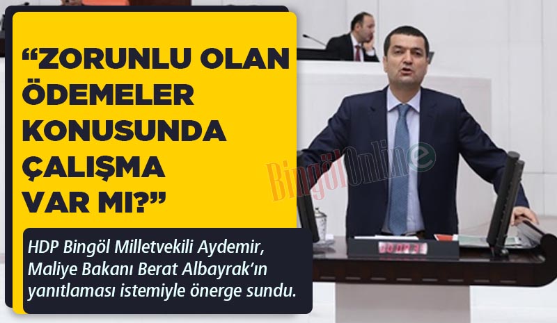 Halkların Demokratik Partisi (HDP) Bingöl Milletvekili Erdal Aydemir, koronavirüs sürecinde zorunlu olarak kapatılan işletmelerin ödemeleri konusunda çalışmaların yapılıp yapılmadığını, yevmiye ile çalışan işçilere maddi destek sağlanıp sağlanmadığını sordu.