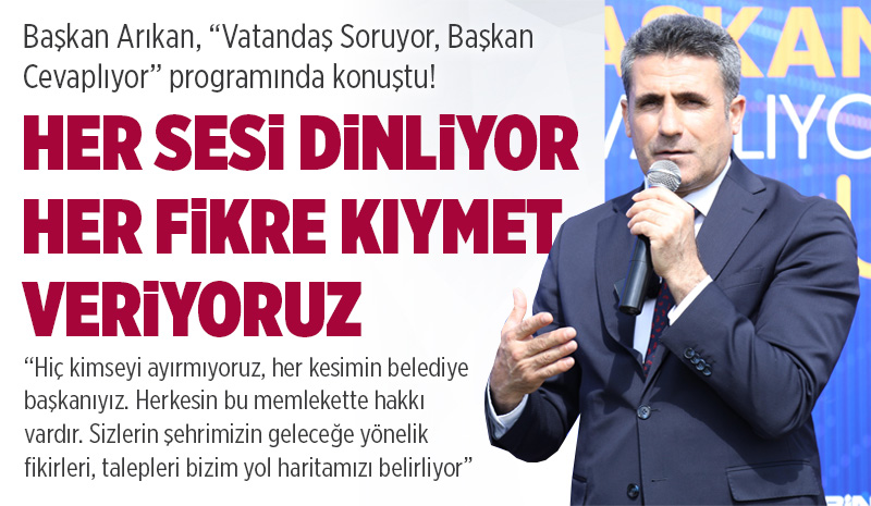 Cumhurbaşkanı Recep Tayyip Erdoğan'ın ortaya koyduğu “Millete efendi değil, hizmetkâr olmaya geldik” anlayışını kendilerine rehber edindiklerini ifade eden Başkan Arıkan; “Biz sizin için buradayız. Biz sizin verdiğiniz yetki ile buradayız. Belediye başkanlığı siyaset yapma yeri değildir, siyasi bir makam değildir. Hizmet yapma makamıdır. Biz bütün vatandaşlarımıza, bütün mahallelerimize eşit hizmet götürmek için çalışıyoruz. Hiç kimseyi ayırmıyoruz, her kesimin belediye başkanıyız. Herkesin bu memlekette hakkı vardır. Sizlerin şehrimizin geleceğe yönelik fikirleri, talepleri bizim yol haritamızı belirliyor.” şeklinde konuştu.