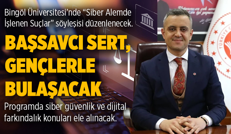 Bingöl Üniversitesi tarafından gençlerin dijital dünyadaki risklere karşı bilinçlendirilmesi amacıyla “Siber Alemde İşlenen Suçlar: Ne Kadar Farkındayız?” başlıklı söyleşi programı düzenlenecek. Bingöl Cumhuriyet Başsavcısı Abdullah Sert'in katılımıyla gerçekleştirilecek etkinlikte siber güvenlik ve dijital farkındalık konuları ele alınacak.