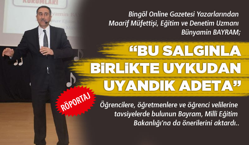Bayram: Bu salgınla birlikte uykudan uyandık adeta..!Bingöl Online Gazetesi Yazarlarından Maarif Müfettişi Eğitim ve Denetim Uzmanı Bünyamin Bayram, verdiği mülakatta uzaktan eğitim sürecine dair detayları anlattı. Yaklaşık 18 milyon öğrenci ve 1 milyonu aşkın öğretmen günün büyük bir bölümünü okullarda geçirdiğine dikkat çeken Bayram: 'Bundan sonra herşeyin değişeceği gibi okulların temizlik anlayışı da değişecek ve çok daha iyi olacaktır' dedi. Öğrencilere, öğretmenler eve öğrenci velilerine tavsiyelerde bulunun Bayram, Bakanlığa da önerilerini aktardı..![]() Çinin Wuhan kentinde ortaya çıkan, 28 ülkeye yayılan ve yüzbinlerce kişiye bulaşan, binlerce kişinin ölümüne neden olan Koronavirüs'ünün yayılmasını önleme kapsamında birçok yerde olduğu gibi ülkemizde de ilk, orta, yaygın eğitim ve üniversitelerde eğitime ara verildi. Tabi öğrencilerin eğitim hayatlarını sürdürebilmeleri için uzaktan eğitim uygulamasına geçilerek, evlerde online dersler verilmeye de başlandı. Kitlesel uzaktan eğitim 1950'lerden itibaren kitlelere, başta televizyon olmak üzere farklı kanallarla dünyada yaygınlaşarak bugün erişilebilir hale gelmeye başladı. Genelde yerleşik okul eğitiminin bilgi işleme modelinin uzaktan sağlanmasına dayandırılmıştır. Ülke olarak, bir yandan dünyada yaşanan küreselleşme, bilişim çağı, yapay zeka ve dijital devrim gibi gelişmelere uyumlu bir değişim çabalarına ilaveten, bir anda okul eğitimleri kesintiye uğrayan öğrencilere, karantina ortamında yani evlerinde eğitimlerini sürdürmelerini sağlayacak olanaklar sunma durumuyla da karşı karşıya kaldık. Tüm bu yaşanan gelişmeleri ve uzaktan eğitime dair detayları Bingöl Online Gazetesi Yazarlarından Maarif Müfettişi Eğitim ve Denetim Uzmanı Bünyamin Bayram'a sorduk…! İşte o röportajdan öne çıkanlar….