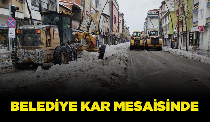 Kar yağışının ardından kent merkezinde yoğun bir mesaiye başlayan belediye, 25 araç ve 110 ekiple karla mücadele çalışması yaptı.