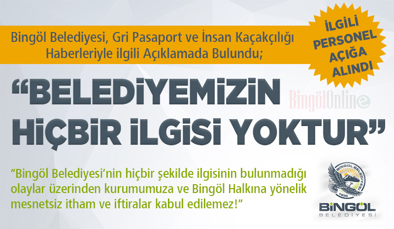 Son günlerde, bir dernek tarafından hazırlanan ve Malatya Yeşilyurt Belediyesi işbirliğiyle yürütülen “Çevreye Duyarlı Bireyler” Projesi kapsamında hizmet damgalı (gri) pasaportla yurtdışına giden ve geri dönmeyenlerle ilgili “Belediyeler Eliyle İnsan Kaçakçılığı” ve benzeri başlıklı haberler ulusal, yerel ve sosyal medya organlarında sıklıkla paylaşılmaktadır. Ancak bu haber ve paylaşımlar üzerinden Bingöl Belediyesi'ne yönelik asılsız ve mesnetsiz ithamlarda bulunulduğu görülmektedir.