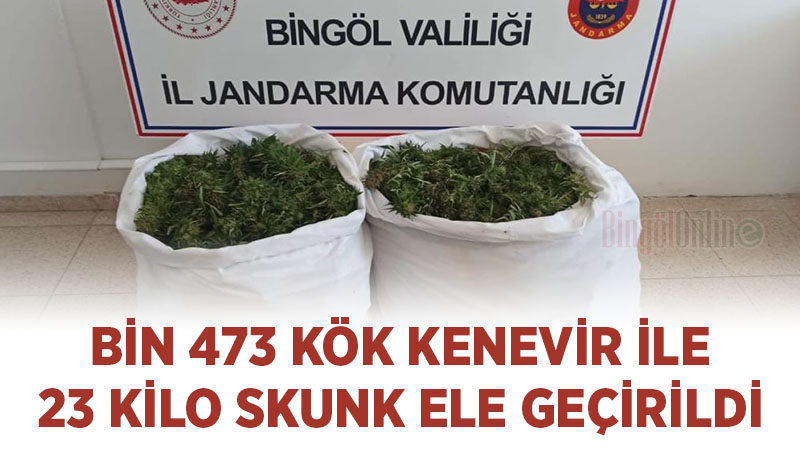 Valilik tarafından yapılan açıklamada, “Bingöl İl Jandarma Komutanlığı unsurlarınca yürütülen istihbari çalışmalar neticesinde Genç ilçesi kırsalında şüpheli şahıslar tarafından yüklü miktarda yasa dışı kenevir ekimi yapıldığı ve kenevir tarlalarından esrar elde edilerek piyasaya sürüleceğine dair elde edilen bilgiler doğrultusunda 19-20 Eylül 2021 tarihlerinde Genç ilçesi kırsalında icra edilen operasyonlarda 2 farklı noktada tarla içerisinde bin 473 kök kenevir bitkisi ve kurutulmaya bırakılmış 23 kilogram skunk maddesi ele geçirilmiştir” denildi.