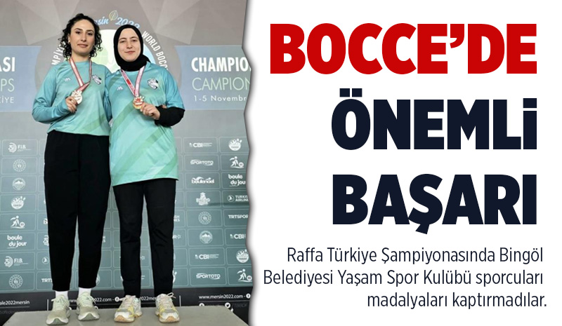 Bingöl Belediyesinden yapılan açıklamada, “27 Ocak -1 Şubat tarihlerinde Mersin'de düzenlenen Türkiye Büyükler Bocce (Raffa) Şampiyonasında Belediye Yaşam Spor Kulübümüz sporcusu Şevval Akçanlı 1'incilik, Eda Sayak ise 3'üncülük elde etti. Sporcularımızı kutluyor; başarılarının devamını diliyoruz” denildi.