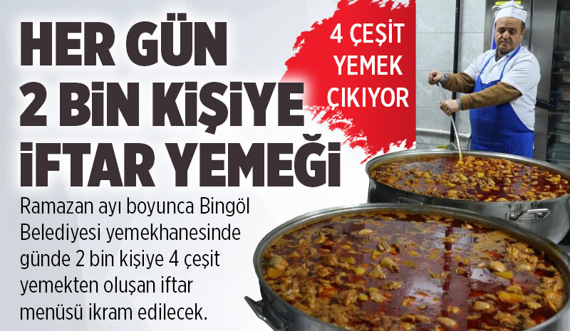Bingöl Belediyesi, Ramazan ayının birlik ve beraberlik ruhunu yaşatmak amacıyla her Ramazan ayında olduğu gibi bu yıl da misafirlerini ağırlamaya devam ediyor. Belediyenin alt katında yer alan yemekhanede Ramazan ayı süresince iftarda günlük 2 bin kişiye 4 çeşit yemek verilecek.