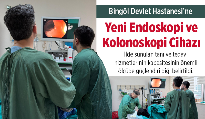Sağlık hizmetlerinin etkinliğini, erişilebilirliğini ve kalitesini artırmaya yönelik çalışmalar kapsamında Bingöl Devlet Hastanesi'ne son teknolojiye sahip yeni endoskopi ve kolonoskopi cihazı kazandırıldı. Kurulum işlemleri tamamlanan cihaz vatandaşların hizmetine sunuldu.