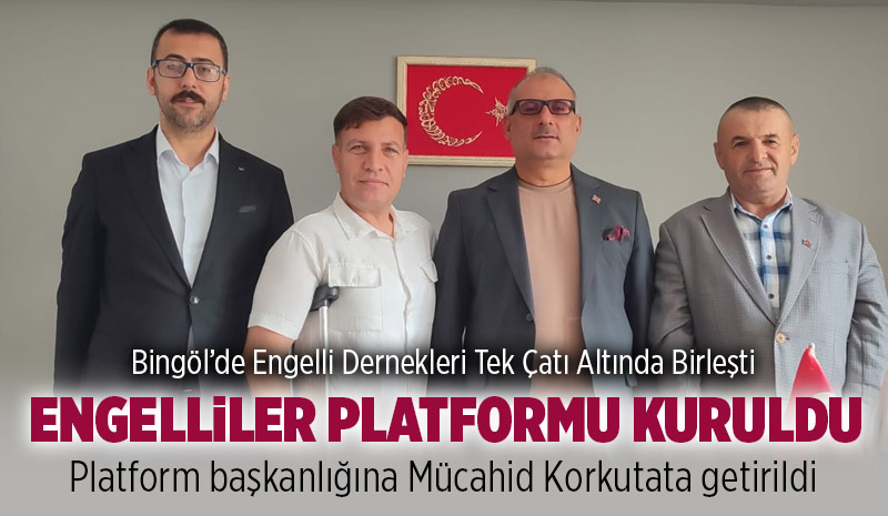 Bingöl'de 4 engelli derneği, “engelli bireylerin eğitim, istihdam, erişebilirlik, sosyal içerme olmak üzere hak temelli mücadelede engeli hak ve hukukunu müdafaa etmek için ortak bir kararlılık sergilemek” maksadıyla ‘Bingöl Engelliler Platformu'nu kurdu. Platform Başkanlığına Bingöl Engelliler Spor Kulübü Başkanı Mücahid Korkutata getirildi