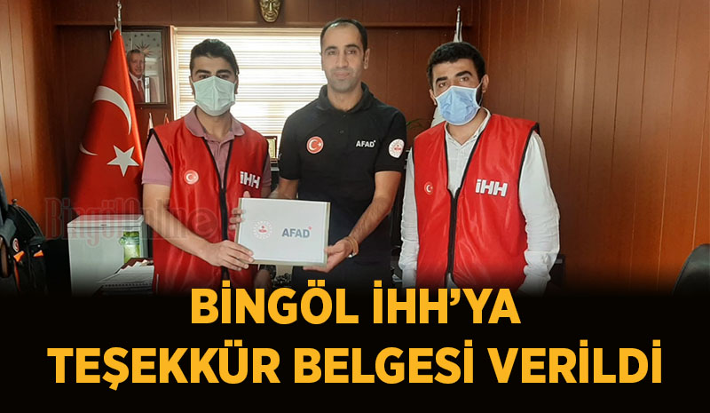 Kastamonu'nun Bozkurt İlçesi'nde 11 Ağustos'ta şiddetli yağışlar sonucu yaşanan sel felaketinin ardından Türkiye'nin her yerinden sevk edilen ekipler, ilçede normal hayata dönülmesi için canla başla çalışmıştı. Çalışmalarda Bingöl İnsan Hak ve Hürriyetleri İnsan Yardım Derneği (Bingöl İHH), Arama ve Kurtarma ekipleri de görev aldı. İçişleri Bakanı Süleyman Soylu, Bingöl İHH'ya görevde gösterdikleri gayret ve başarılardan dolayı “Teşekkür Belgesi” gönderdi. Bingöl İHH Arama ve Kurtarma ekibine teşekkür belgeleri Bingöl İl Afet ve Acil Durum Müdürü Kerem Oruk tarafından takdim edildi.