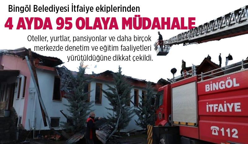 | Bingöl İtfaiyesi 4 ayda 95 olaya müdahale ettiBingöl Belediyesi İtfaiye Müdürlüğü'nün 01 Ocak-05 Nisan 2025 faaliyet raporu açıklanırken, 95 olaya müdahale edildiği, oteller, yurtlar, pansiyonlar ve daha birçok merkezde denetim ve eğitim faaliyetleri yürütüldüğüne dikkat çekildi. Bingöl Belediyesi tarafından donanımlı hale getirilen itfaiye teşkilatı, yangın, trafik kazaları, hayvan kurtarma gibi birçok alanda vatandaşların yardımına koşmaya devam ediyor. Bu çerçevede çalışmalarını sürdüren Bingöl Belediyesi İtfaiye Müdürlüğü tarafından 4 ayda, 10'u araç yangını, 9'u ev yangını, 10 sıkışmalı trafik kazası, 7 normal trafik kazası, 4intihar vakası ve 25 farklı olayda asansör sıkışması sonucu insan kurtarma operasyonu olmak üzere toplamda 95 yangına müdahale edildi. Şubat ve Mart aylarında, 86 adet kurum, kuruluş ve özel sektör işletmesinde yangın uygunluk denetimi gerçekleştirildi. 49 adet kurum, kuruluş ve özel sektöre, Milli Eğitim'e bağlı yurtlar, Gençlik ve Spor İl Müdürlüğü'ne bağlı yurtlar, özel yurtlar ve özel hastaneler olmak üzere yangın öncesi, yangın sırasında ve yangın sonrası alınması gereken önlemler konusunda eğitim verildi. BİN 611 KİŞİYE EĞİTİM SAĞLANDIÖte yandan itfaiye ekipleri tarafından verilen ek faaliyetler, Milli Eğitim'e bağlı okul ve pansiyonlarda yangın tahliye tatbikatlarının tamamı gerçekleştirildi. Gençlik ve Spor İl Müdürlüğü'ne bağlı yurtlarda eğitim ve denetleme faaliyetleri yapıldı. Bingöl şehir merkezindeki otellerin denetimleri gerçekleştirildi. Adaklı, Yedisu, Karlıova ve Kiğı ilçelerinde kaymakamlıklar, belediyeler, yatılı bölge okulları ve hastaneler dahil tüm kurum ve kuruluşların denetimleri yapıldı. Bingöl İtfaiye Müdürlüğü tarafından denetim, tatbikat ve eğitim faaliyetlerin kesintisiz bir şekilde devam edeceği bildirildi.