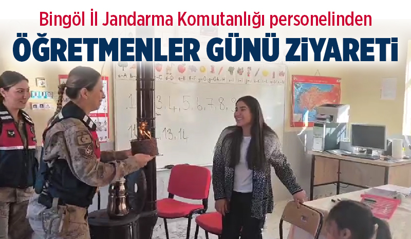 Bingöl İl Jandarma Komutanlığı personeli, 24 Kasım Öğretmenler Günü kapsamında Kiğı ilçesine bağlı Alagöz İlkokulu'nu ziyaret etti. Ziyarette okulda görev yapan öğretmenle sohbet edilirken, bu özel güne özel olarak pasta kesildi.