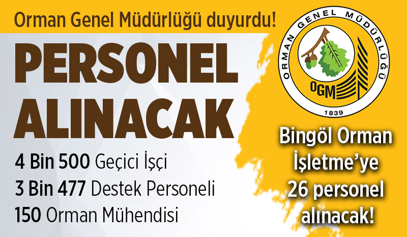 Bingöl Orman İşletme'ye 26 personel alınacakOrman Genel Müdürlüğü, merkez ve taşra teşkilatlarında görevlendirilmek üzere 150 sözleşmeli orman mühendisi, 3 bin 477 sözleşmeli destek personeli ve 4 bin 500 geçici işçi alımı yapacak. Bu kapsamda Bingöl'de 26 personel alınacak. Başvurular bugün başlıyor. Aranan şartlar şöyle;![]() Tarım ve Orman Bakanlığı Orman Genel Müdürlüğü'nün 2025 yılı sözleşmeli destek personeli ve sözleşmeli orman mühendisi ve geçici işçi alım ilanı Resmî Gazete'de ve kurumun internet sitesinde yayımlandı. İlanda Orman Genel Müdürlüğünün, merkez ve taşra teşkilatlarında görevlendirilmek üzere 150 sözleşmeli orman mühendisi, 3 bin 477 sözleşmeli destek personeli ve 4 bin 500 geçici işçi alımı yapacağı duyuruldu. BAŞVURULAR 17- 28 MART 2025 TARİHLERİNDEOrman Genel Müdürlüğü, Yazılı veya sözlü sınav yapılmaksızın, KPSS (B) grubu puan sıralaması esas alınmak suretiyle ülke genelinde 2 bin 674 şoför ve operatör ve 803 temizlik, servis, evrak, arşiv ve bakım işleri olmak üzere toplam 3 bin 477 sözleşmeli destek personeli alınacağı belirtildi. Destek personeli alımları için başvuruların, 17- 28 Mart 2025 tarihleri arasında e-Devlet üzerinde Orman Genel Müdürlüğü – Kariyer Kapısı Kamu İşe Alım ve Kariyer Kapısı https://isealimkariyerkapisi.cbiko.gov.tr adresi üzerinden yapılabileceği açıklandı. Bingöl Orman İşletme İl Müdürlüğüne; temizlik, servis, evrak, arşiv ve bakım işleri alanında 2, şoför ve operatör alanında 6 olmak üzere toplam 8 destek personeli alınacağı belirtildi. 4 BİN 500 GEÇİCİ İŞÇİ BAŞVURULARI BUGÜN BAŞLIYOROrman Genel Müdürlüğü taşra teşkilatında istihdam edilmek üzere orman işçisi pozisyonunda 3 bin 105, arazöz şoförü pozisyonunda 812, dozer operatörü pozisyonunda 160, greyder operatörü pozisyonunda 233, ekskavatör operatörü pozisyonunda 122, iş makinesi operatörü pozisyonunda 36 ve traktör operatörü pozisyonunda 32 olmak üzere toplamda 4 bin 500 geçici işçi alımı yapılacağı belirtildi. Geçici işçi pozisyonunda Bingöl Orman İşletme İl Müdürlüğüne; 13 orman işçisi, 4 arazöz şoförü ve 1 greyder operatörü olmak üzere 18 işçi alınacak. İşçi alımı başvuruları; 10-14 Mart 2025 tarihleri arasında Türkiye İş Kurumu üzerinden yayımlanacak olup ilanda belirtilen şartları taşıyan adaylar ilan süresince başvurularını Türkiye İş Kurumu üzerinden yapabilecek. Ayrıca ülke genelinde 150 mühendis alımının yapılacağı belirtildi.