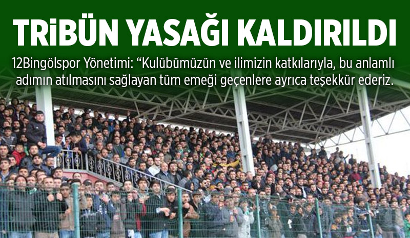 12 Bingölspor Kulübü Yönetimi, tribün yasağının Bingöl Valiliği, milletvekilleri, kamu kurumları ve iki kulüp yönetiminin girişimiyle kaldırıldığını duyurdu.