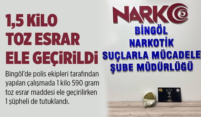 Bingöl'de 1,5 kilo toz esrar ele geçirildiBingöl'de polis ekipleri tarafından yapılan çalışmada 1 kilo 590 gram toz esrar maddesi ele geçirilirken 1 şüpheli de tutuklandı.![]() Bingöl İl Emniyet Müdürlüğü ekipleri uyuşturucuyla mücadele çalışmalarını sürdürüyor. Bu çerçevede Muş-Bingöl karakolu üzerinde şüpheli bir araç durdurularak arama yapıldı. Aramada, 1 kilo 590 gram toz gram esrar maddesi ele geçildi. Gözaltına alınan ve emniyetteki işlemlerini ardından adliyeye sevk edilen şüpheli, tutuklanarak cezaevinde gönderildi.