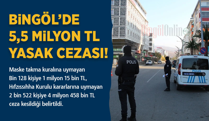 Ülke genelinde olduğu gibi Bingöl'de de korona virüs (Covid-19) tedbirlerinin uygulanmasının denetimi valilik koordinesinde jandarma ve emniyet birimleri tarafından sürdürülüyor. Bu tedbirler kapsamında İl Hıfzıssıhha kurul kararlarına uymayanlara yönelik alınan karar gereği para cezası kesiliyor.