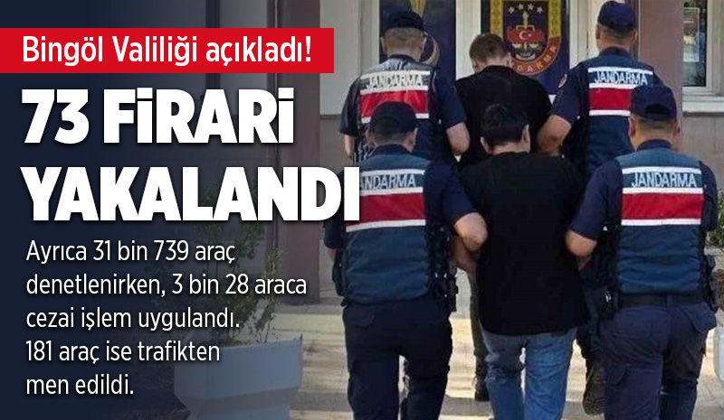 Bingöl Emniyet Müdürlüğü ve Jandarma Komutanlığı, kentte çalışmalarını aralıksız sürdürüyor. Bu çerçevede, 8-25 Eylül 2025 tarihleri arasında gerçekleştirilen çalışmalarda toplam 150 bin 69 şahıs sorgulandı. Ayrıca 31 bin 739 araç denetlenirken 3 bin 28 araca cezai işlem uygulandı ve 181 araç trafikten men edildi. Aynı zamanda haklarında kesinleşmiş hapis cezası bulunan 15 ile ifadeye yönelik arama kaydı bulunan 58 şahıs olmak üzere 72 firarinin yakalandığı bildirildi.