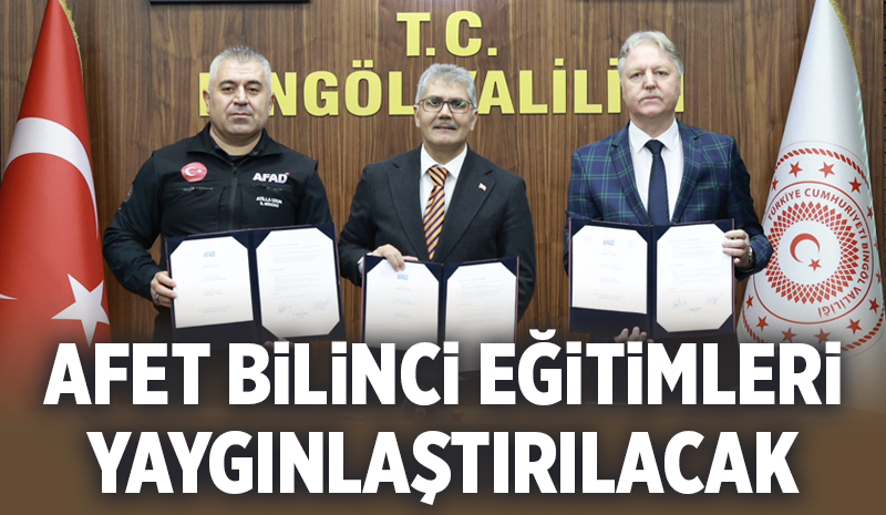 Bingöl Valiliği öncülüğünde İl Milli Eğitim ve AFAD İl Müdürlüğü arasında imzalanan iş birliği protokolüyle öğrenci, öğretmen ve milli eğitim personellerine yönelik afet bilinci eğitimleri yaygınlaştırılacak.