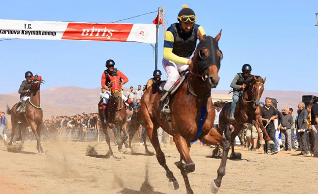 | Bingöl'de at yarışları renkli görüntüler oluşturduBingöl'ün Karlıova ilçesinde 8 ilden yaklaşık 80 yarışmasının katılımıyla gerçekleştirilen geleneksel at yarışları renkli görüntüler oluşturdu. Bingöl'ün Karlıova ilçesinde bu yıl 3'üncüsü düzenlenen Geleneksel Toklular At Yarışları Kaymakamlık Koşusu, yoğun katılımla gerçekleştirildi. Toklular Mahallesi'nde düzenlenen yarışlara, Bingöl Valisi Ahmet Hamdi Usta, Bingöl Belediye Başkanı Erdal Arıkan, Karlıova Kaymakamı Abdulselam Bıçak, Karlıova Belediye Başkanı Veysi Bingöl, kurum amirleri ve çok sayıda vatandaş katıldı. Beş farklı kategoride gerçekleştirilen yarışlarda büyük çekişme yaşandı. Yarışların ardından protokol dereceye giren jokeylere kupalarını takdim etti. Programda ayrıca halk oyunları gösterisi sergilendi, vatandaşlar büyük ilgi gösterdi. Vali Usta, geleneksel sporların yaşatılmasının önemine dikkat çekerek, "Terörsüz Türkiye sürecinde bu kardeşlik ve barış ortamını biz üç yıl önce Karlıova'da sağladık. Sadece Karlıova'dan değil 8 ilden gelen 80 civarında yarışmacı ve 5 kategorideki rekabet sonucu ortaya çıkan güzel manzara hepimizi mutlu etti. Dolayısıyla bu sadece Karlıova değil ileriki dönemlerde bölgesel, hatta ulusal önem kazanacağını ümit ediyorum. Bu anlamda destek veren kamu kurumlarımıza ve sponsorlarımıza teşekkür ederim. Bir teşekkürü de katılımcılara ediyorum" dedi. Etkinlik, yarışlara katılan at sahipleri, vatandaşlar ve protokol üyelerinin hatıra fotoğrafı çektirmesiyle sona erdi.