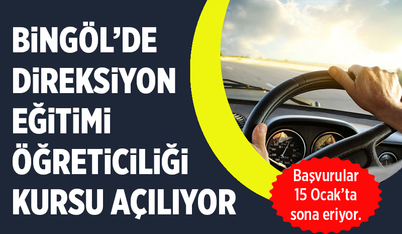 Bingöl Halk Eğitimi Merkezi Müdürlüğü, Motorlu Taşıt Sürücüleri Direksiyon Eğitimi Öğreticiliği Kursu açılacağını açıkladı. Kursa başvurular 15 Ocak 2026 tarihine kadar yapılabilecek.