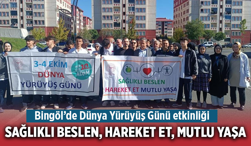 Bingöl'de Dünya Yürüyüş Günü etkinliğiBingöl'de 3-4 Ekim Dünya Yürüyüş Günü nedeni ile yürüyüş etkinliği düzenlendi.![]() Dünya Yürüyüş Günü kapsamında “Sağlıklı Beslen, Hareket Et, Mutlu Yaşa” temasıyla İl Sağlık Müdürlüğü kurum yöneticileri ve personeli ile Sağlık Meslek Lisesi öğrencilerinin katılımıyla sağlıklı yaşamı teşvik etmek amacıyla yürüyüş etkinliği gerçekleştirildi. Etkinlik kapsamında fiziksel aktivitenin yaşamdaki yerinin önemine dikkat çekmek ve toplumda hareketli yaşam bilincini artırmak amacıyla farkındalık oluşturuldu. İHA