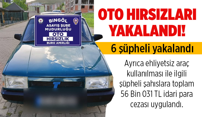 Bingöl Emniyet Müdürlüğü, Asayiş Şube Müdürlüğü 'Oto Hırsızlık Büro Amirliği ekiplerince yürütülen Bingöl'de iki farklı günde gerçekleşen oto hırsızlığı olayının çözülmesi çalışmaları kapsamında 6 şüpheli yakalandığı bildirildi.