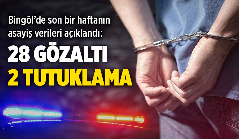 Bingöl Valisi Ahmet Hamdi Usta, 23 Eylül-7 Ekim tarihleri arasında İl Emniyet Müdürlüğü ve İl Jandarma Komutanlığı'nın gerçekleştirmiş olduğu çalışmalara ait asayiş verilerini paylaştı. Vali Usta, icra edilen faaliyetler sonucu 8 gram metamfetamin, 4 kilo 114 gram kubar esrar, 25 kilo 751 gram skunk, 207 gram esrar maddesi, 2 kilo 352 gram toz esrar, 1 gram bonzai, 35 gram kenevir, 204 adet kök skunk bitkisi, bin 432 adet kök kenevir bitkisi, 8 adet hap, 1 adet uyuşturucu kullanma düzeneğinin ele geçirildiğini ve yapılan operasyonlarda 18 kişinin gözaltına alındığını söyledi.